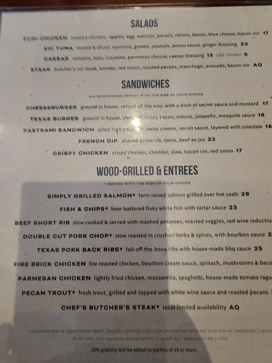 When it comes to entrées, Cork & Pig Tavern shines with a stellar selection of wood-grilled and fire brick dishes. The Pecan Trout and Parmesan Chicken offer a balance of crispy and tender, while the Beef Short Rib and Texas Pork Back Ribs deliver rich, satisfying flavors. The Fire Brick Chicken rounds out the choices, offering a perfectly grilled option for poultry lovers.