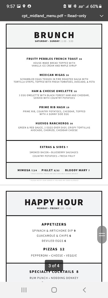 Lastly, their brunch menu is a true treat, featuring the comforting Ham & Cheese Omelet and vibrant Huevos Rancheros. For something a little sweeter, the Fruity Pebbles French Toast is a nostalgic favorite, and the Mexican Migas and Filet Hash offer bold, satisfying options for brunch enthusiasts.
